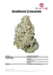 Headband Crescendo's buds are a visual masterpiece, boasting an array of deep greens and fiery oranges. Each nug is adorned with a frosty coat of trichomes, shimmering like diamonds under the light, inviting you to marvel at nature's intricate beauty.